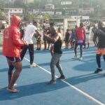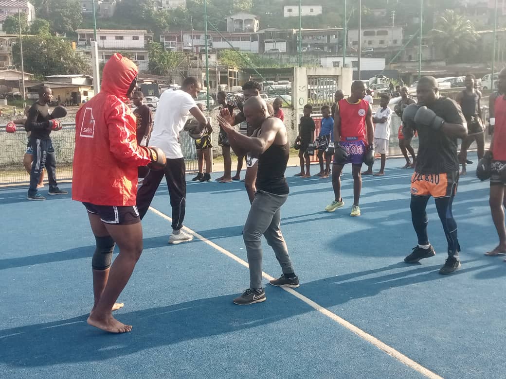 Par Ange Mba Le président de la Ligue de Muay Thaï de l’Estuaire, entouré de…
