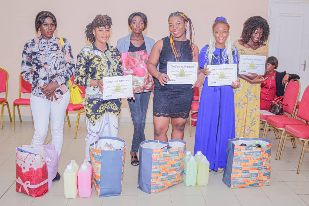 Un encadrement parachevé à l’hôtel de Ville de Lambaréné avec la délivrance d’attestations de formation aux participants, ainsi que l’octroi de kits, essentiellement composé du matériel de travail répartis comme suit: Kit Maquillage : une (01) palette de fards, une (01) palette de poudre et blush, deux (02) fonds de teint liquide, un (01) mascara, un (01) pinceau teint, un (01) kit de pinceaux, une (01) base de teint, un (01) fixateur, deux (02) correcteurs, deux (02) crayons, une (01) éponge blinder, trois (03) gloss, un (01) eyeliner et une (01) trousse de toilette ;