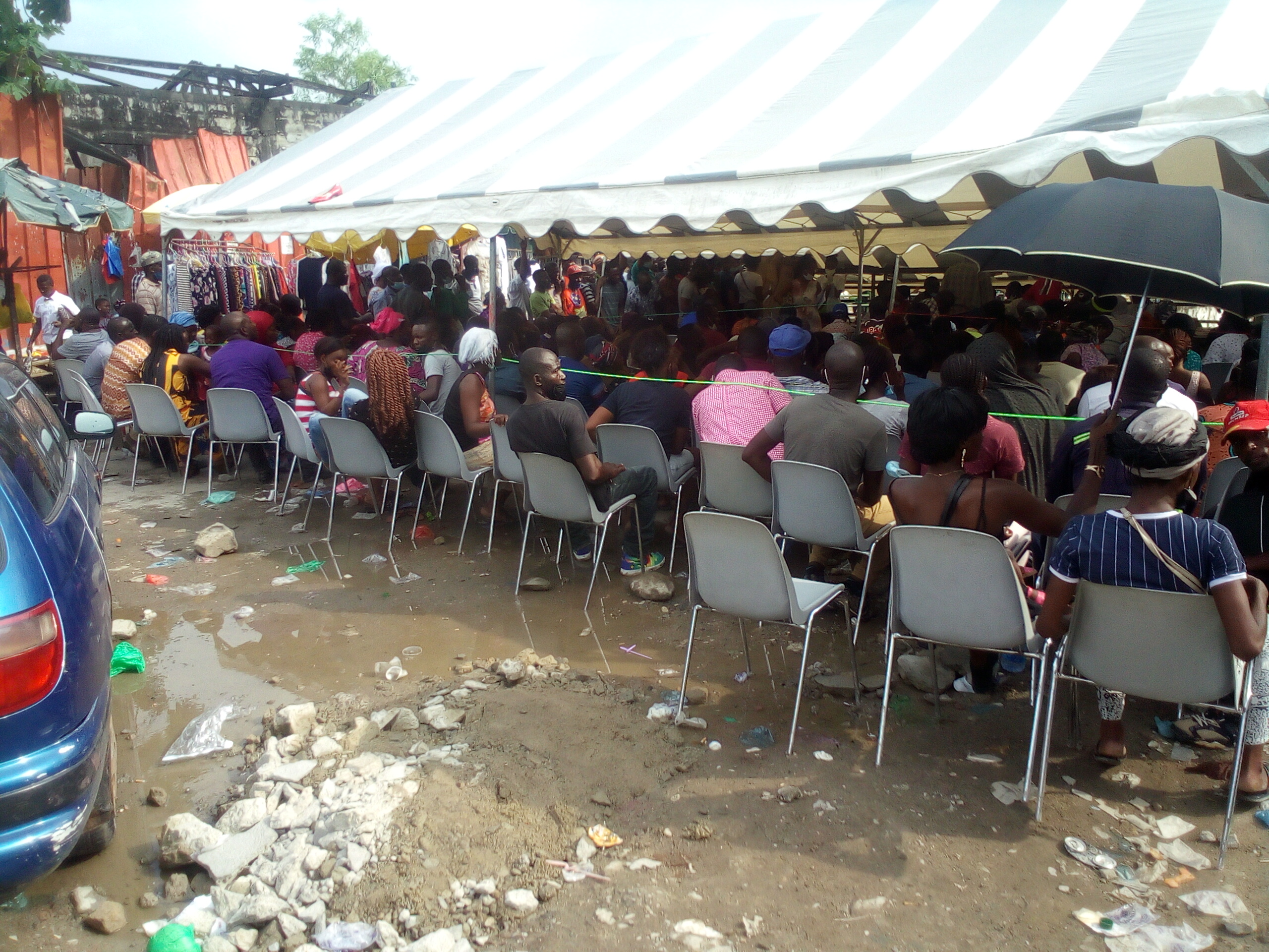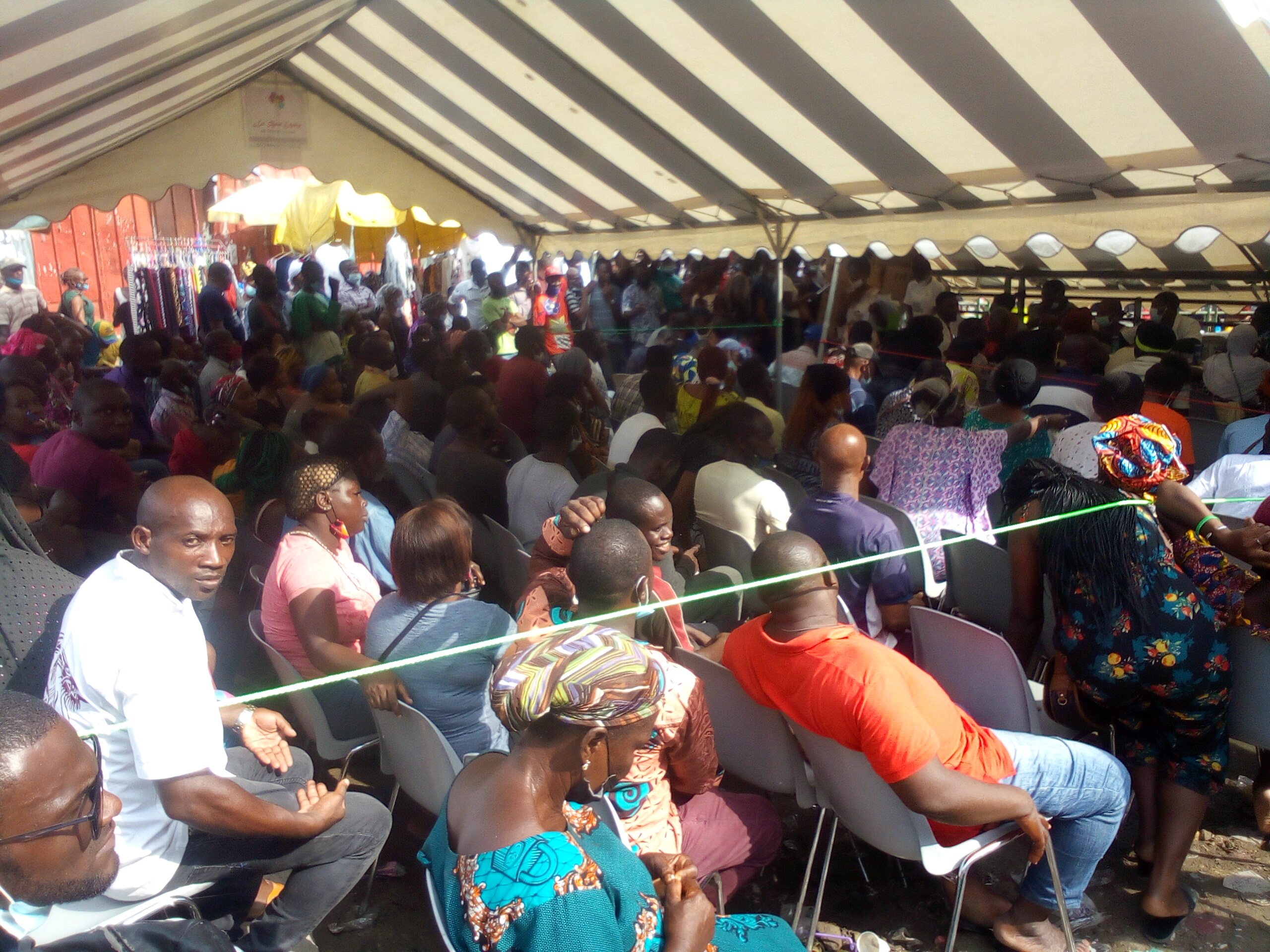 Plus d’une centaine dans une tente minuscule, au mépris de la distanciation, sans bavettes ni gels de désinfection, sous le soleil, le ministère de la santé a validé l’innommable. © Kongossanews