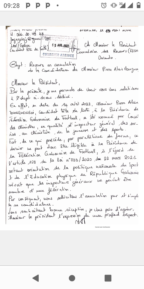 Plus visible encore, en se fondant sur l’argument d’ingérence du politique, ce qui est loin de constituer une hypothèse aujourd’hui au vue des faits, lorsque PAM décline tout poliment sa nomination au poste d’inspecteur, Jérôme Efong Nzolo lui, est bien le seul parmi tous les candidats, à faire appel de cette décision par une correspondance manuscrite (dont notre Rédaction a obtenu copie), dans l’intention d’exiger une disqualification immédiate de son principal challenger qu’il sait ne pas être en mesure de battre à la régulière.