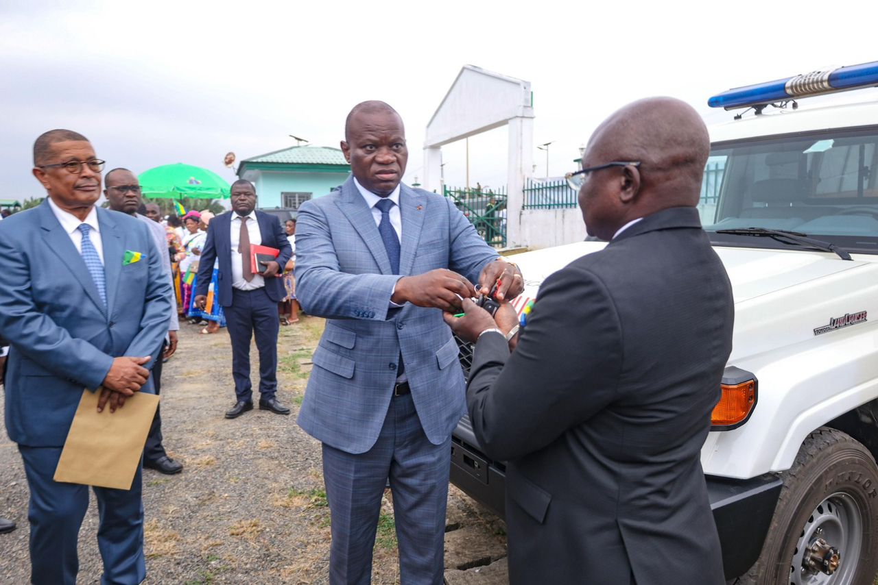 Souhaitant renforcer la logistique sanitaire, le Président de la République a également procédé à la remise symbolique d’un pick-up, d’un bus et de deux ambulances, destinés à améliorer le transport des patients, du personnel médical et des équipements.