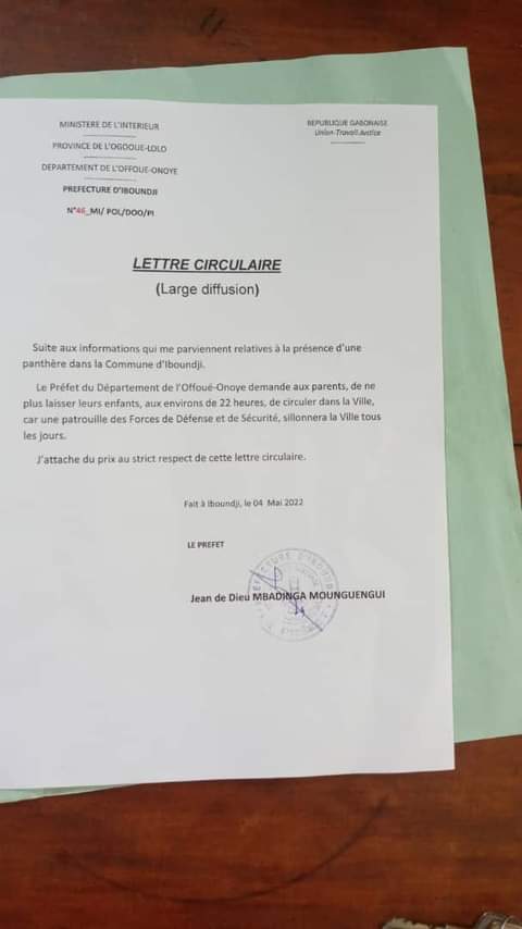 L’autorité de cette petite bourgade de l’ogooué-Lolo, a été alertée de la présence d’une panthère, qui roderait dans les environs depuis un certain temps.