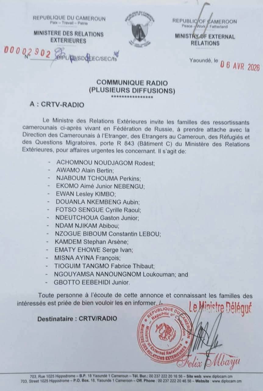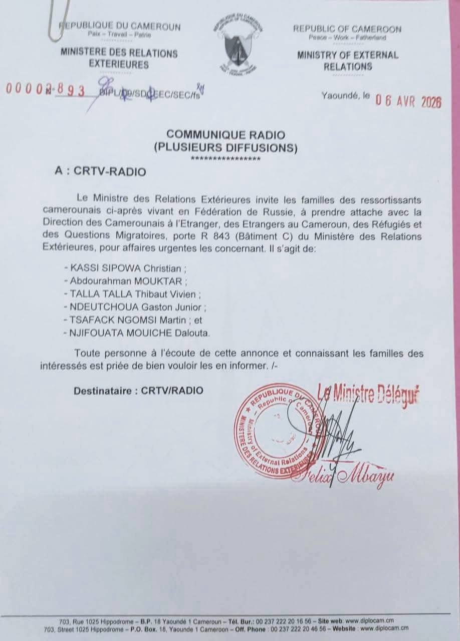 Selon des informations relayées par la RTS, les « 16 militaires contractuels de nationalité camerounaise exerçaient dans la zone d’opération militaire spéciale », appellation utilisée par Moscou pour désigner son offensive militaire en Ukraine. Cette précision figure dans une note du ministère camerounais des Relations extérieures, lequel accuse réception de la liste des défunts transmise par l’ambassade de Russie à Yaoundé.