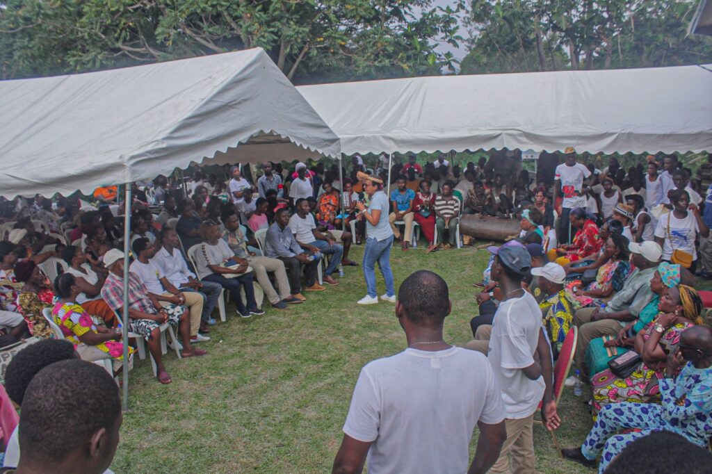 Vue de Madeleine Edmée Berre, s’adressant aux populations