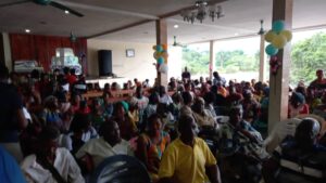 Face à son auditoire, le 15 décembre dernier, Daltry Nang Eko s’est entretenu avec les populations de la Commune de Ndjolé, ce après plus de deux ans d’absence dans le département de l’Abanga-Bigné, une petite ville du Gabon.