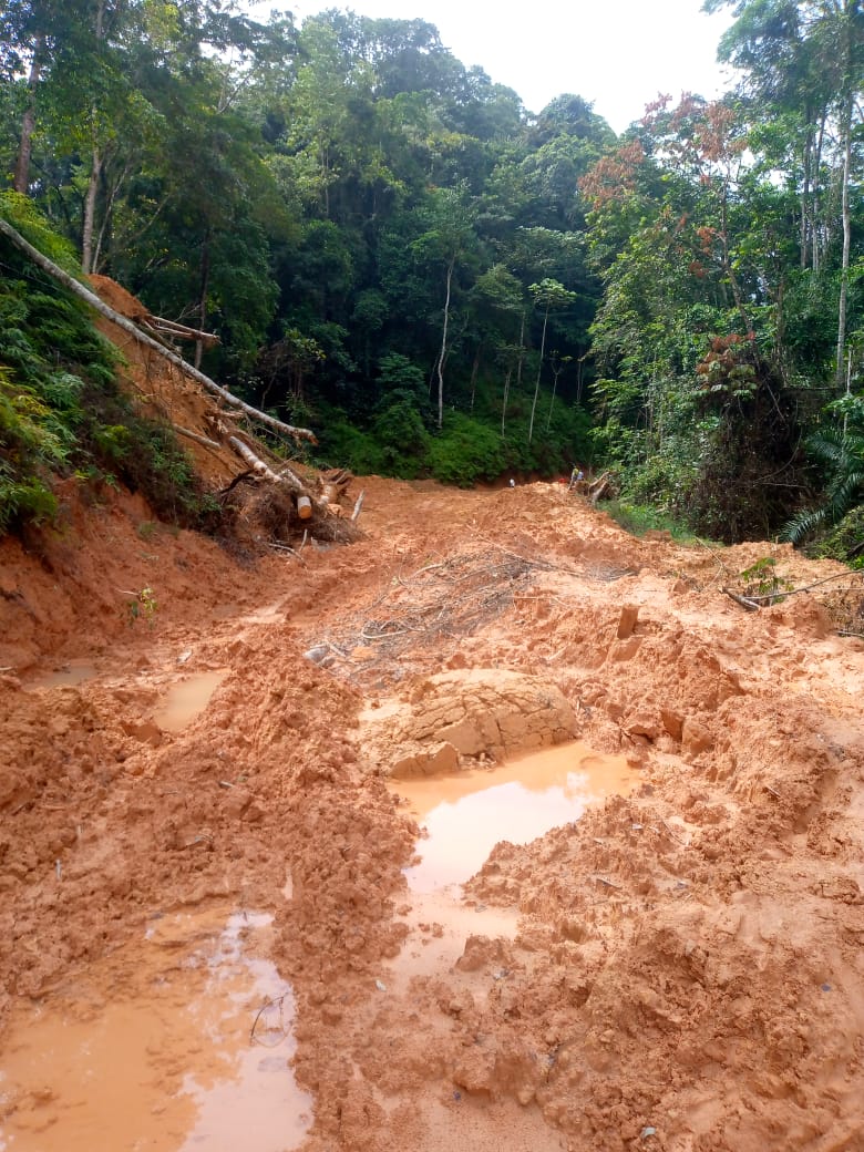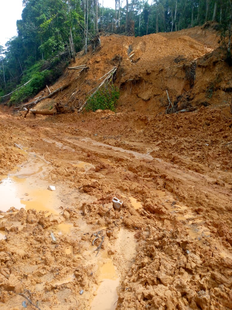 Un incroyable bourbier de près de 800 mètres impose désormais son diktat. Le trafic, lui, est interrompu entre Koulamoutou et Iboundji, par ce fait.