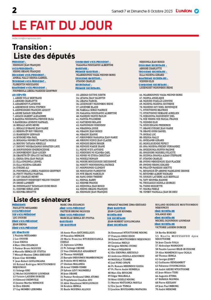 Politique liste des députés, liste des sénateurs, parlement, transition Kongossanews 7 octobre 2023 0 Commentaires Parlement de Transition : consultez la liste ici (députés et sénateurs) Par la Rédaction Publiée dans le journal L’Union, retrouvez la liste complète des députés et sénateurs de la Transition.