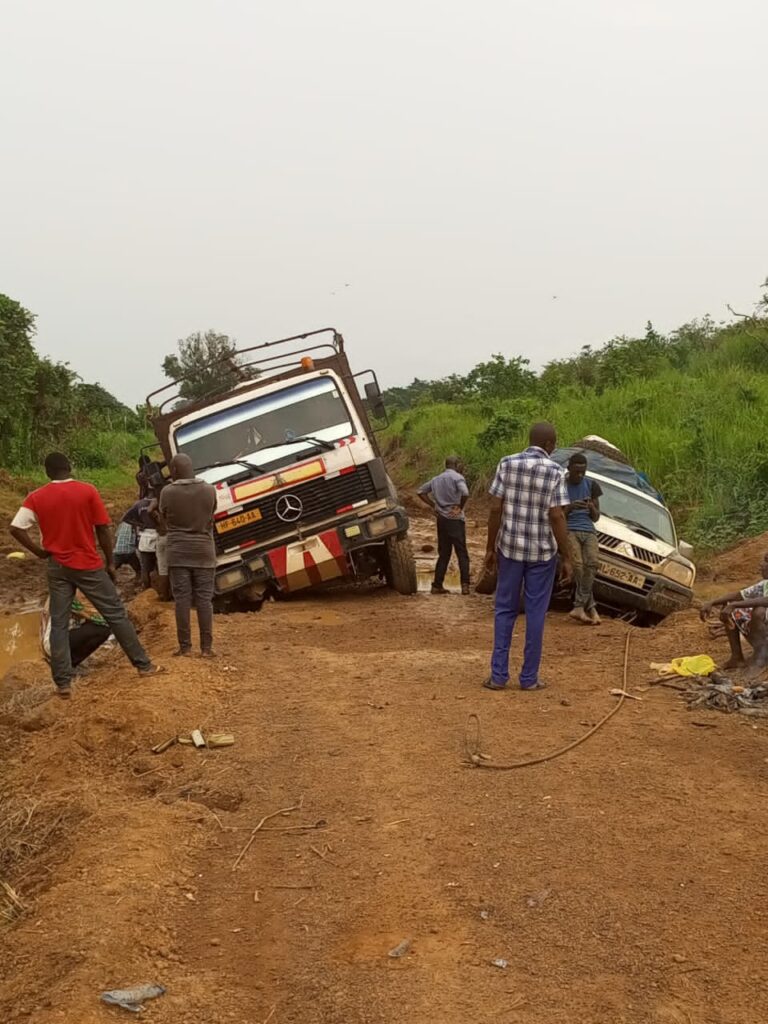 Conséquences, c’est la croix et la bannière pour des véhicules plantés dans la boue depuis deux jours, à quelques kilomètres du village Bayadi.