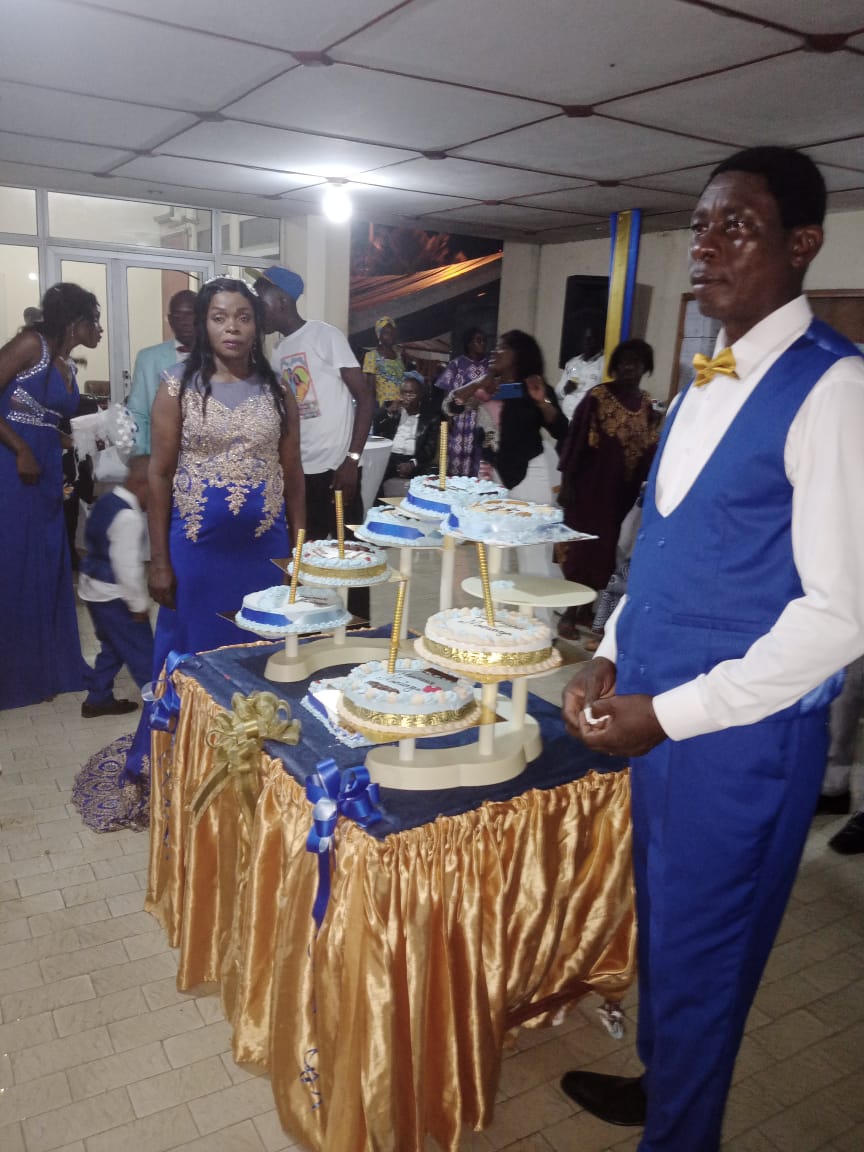 Vue du couple Makolo, partageant le gâteau avec leurs convives