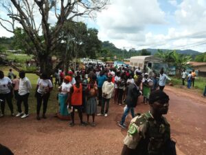 Peu après cette étape à forte coloration économique, le président de la République a eu des échanges avec les femmes commerçantes de Lastourville, au grand marché de ladite localité. Profitant de cette précieuse occasion, ses dernières par la voie de la présidente et fondatrice de leur association, Véronique Ilambi, ont égrené leur chapelet de préoccupations, notamment sur la construction d’un marché moderne, l’attribution d’une aide particulière à leur endroit, sans oublier le conflit homme-Faune, la prise en charge des jeunes filles mères.